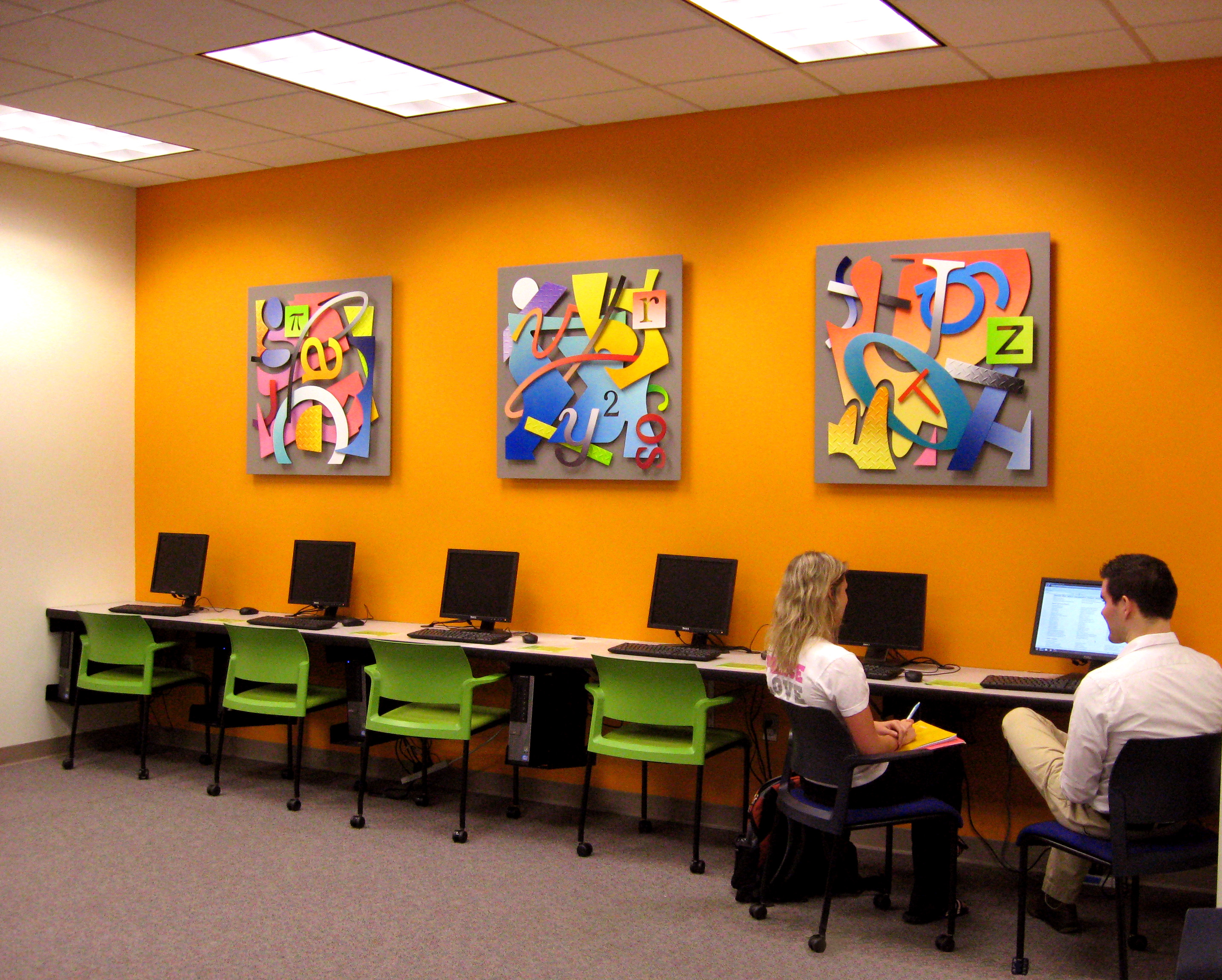 “GVSU” was commissioned by Grand Valley State University in Allendale, Michigan. The abstract triptych installation is in the university’s Mackinac Hall building.