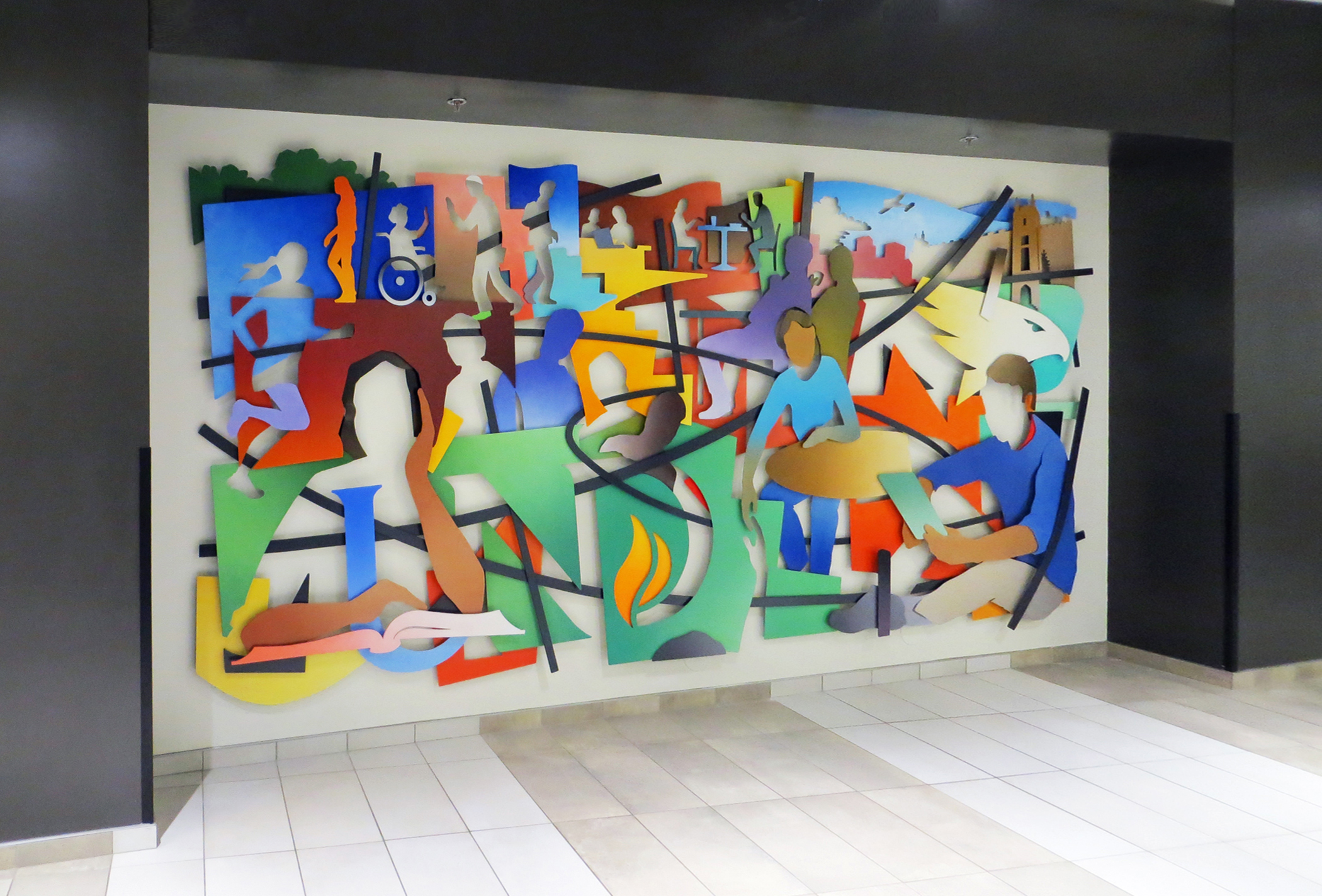 “INTERSECTIONS” was commissioned by the University of North Dakota for the Wilkerson Commons building on the Grand Forks, ND campus.